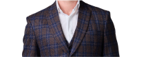Dreiteiliger Anzug aus Tweed mit blau kariertem Muster Tweed-Anzug im dreiteiligen Set mit klassischem blau kariertem Muster, ideal für Vintage-Looks.