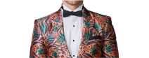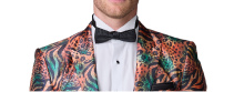 Sakko mit floralem Muster aus Satin Ein florales Satin-Sakko, das Eleganz und Stil für einen modischen und extravaganten Look kombiniert.