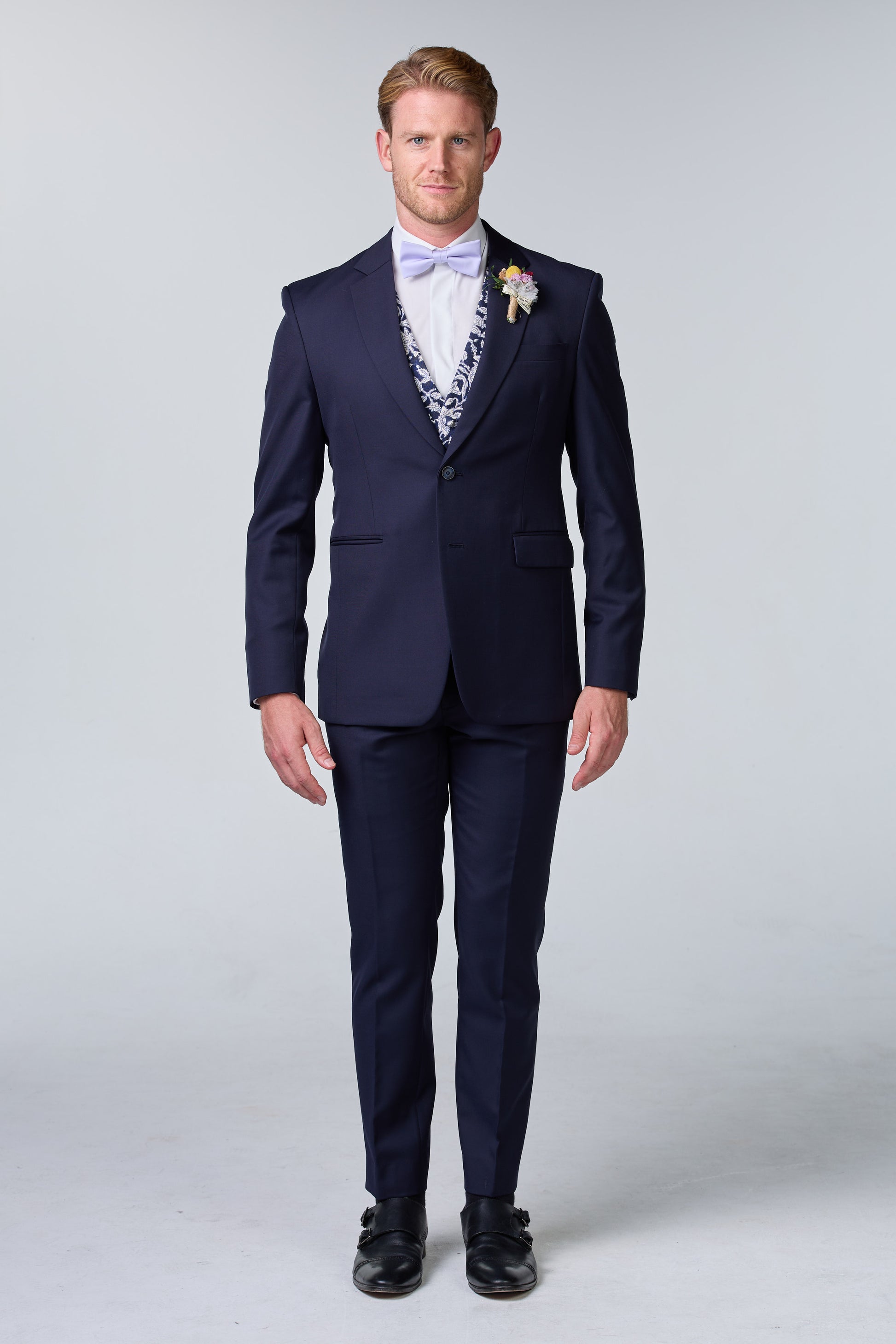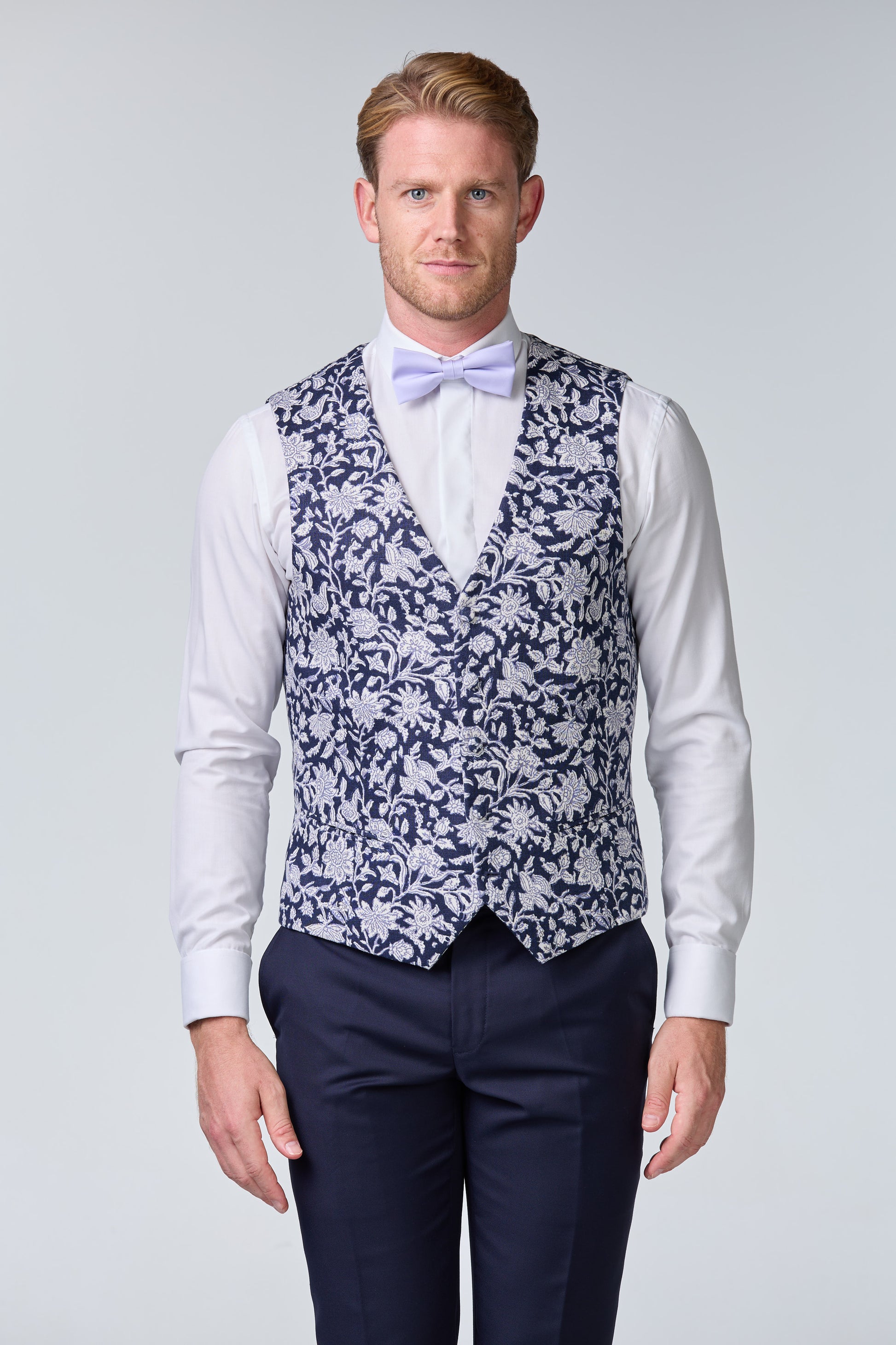 Blauer Hochzeitsanzug inkl. Weste mit Blumenmuster - essentials
