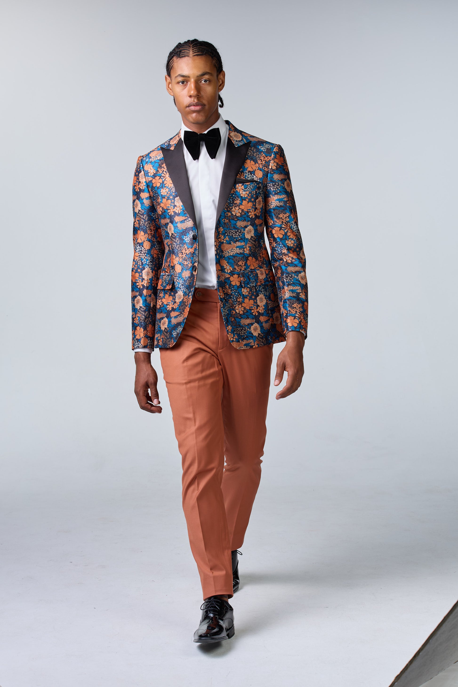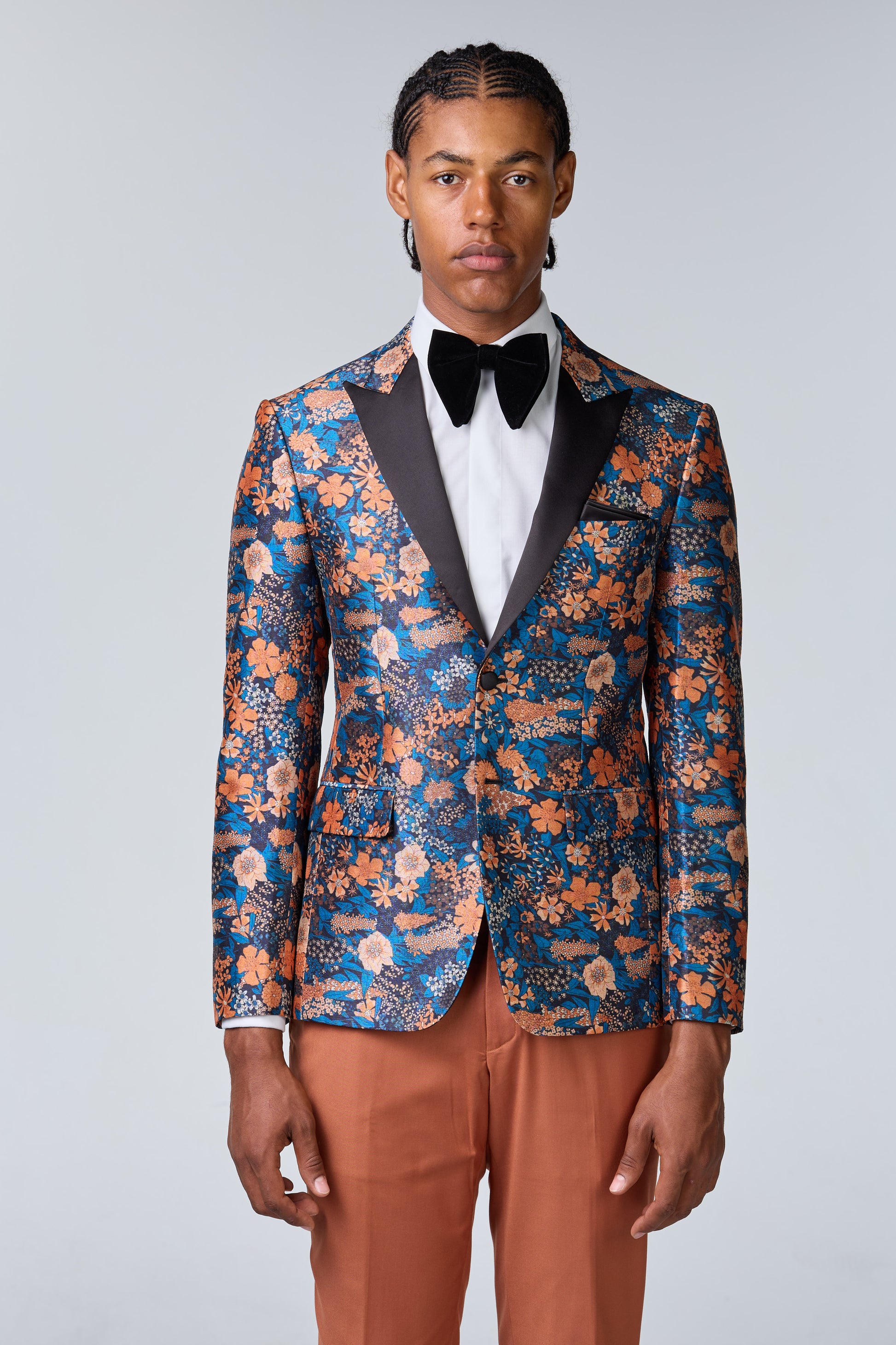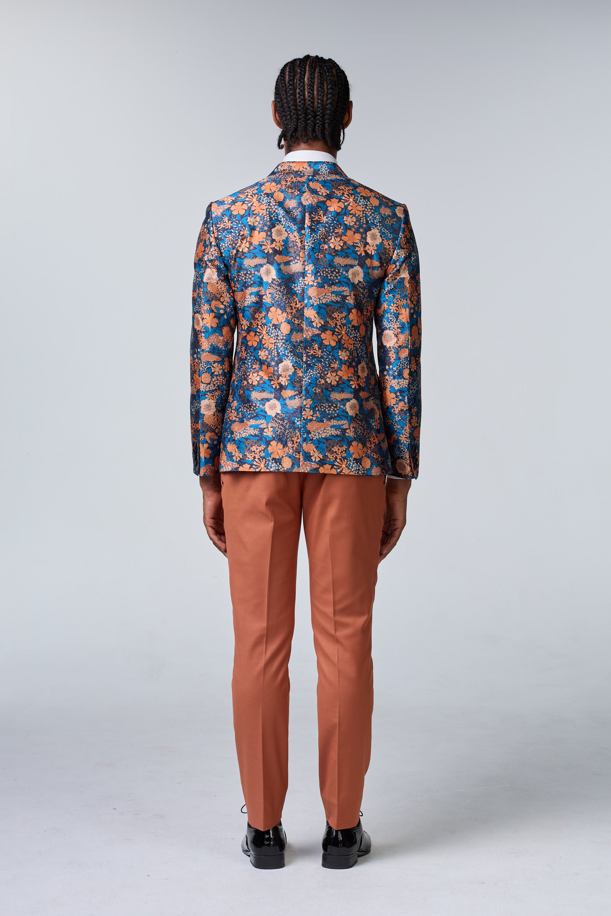 Blaues Seiden-Sakko mit floralem Muster - budget