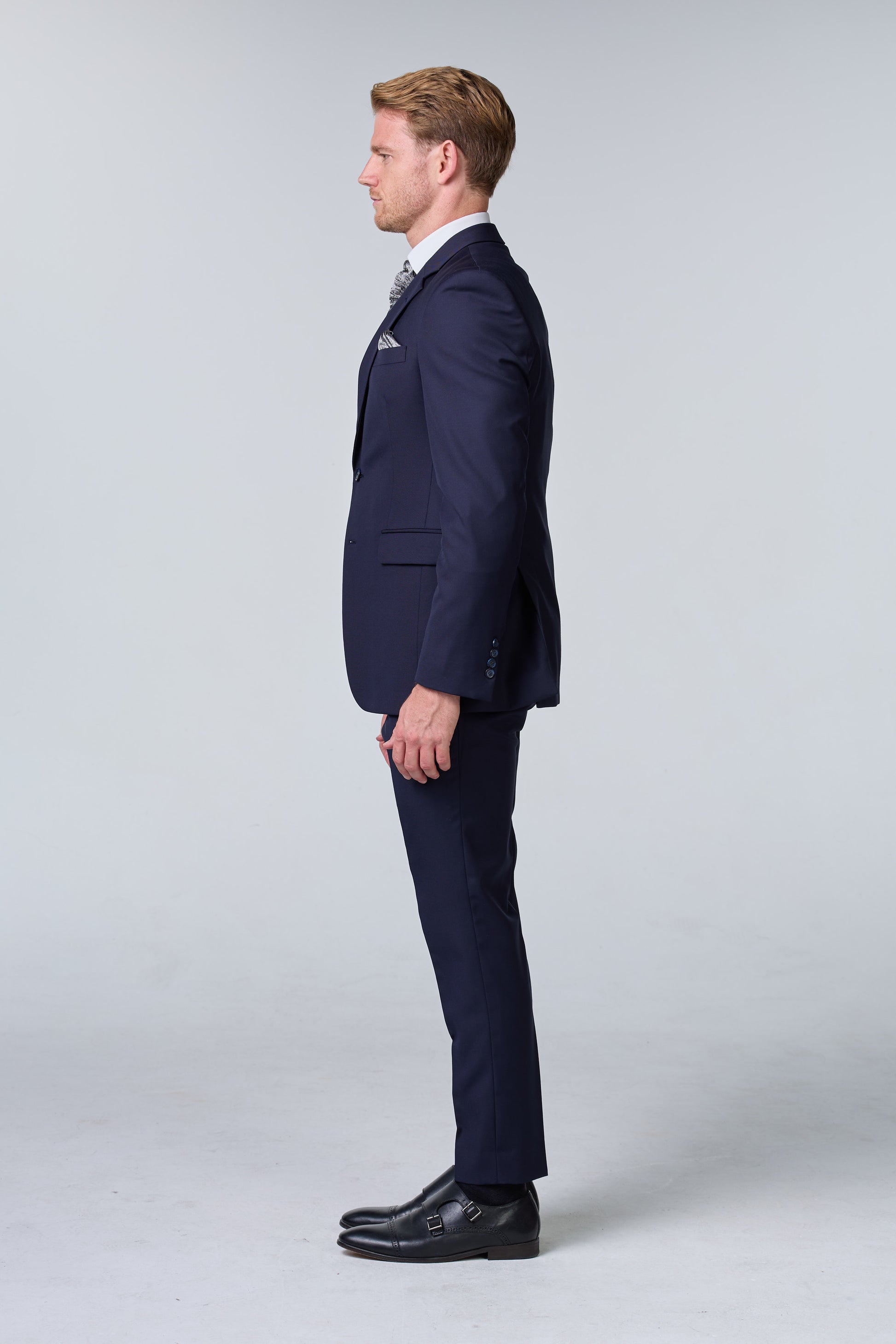 Klassischer Hochzeitsanzug aus Wolle-Satin Ein klassischer Hochzeitsanzug aus Wolle-Satin, ideal für Bräutigame, die einen eleganten Look bevorzugen.