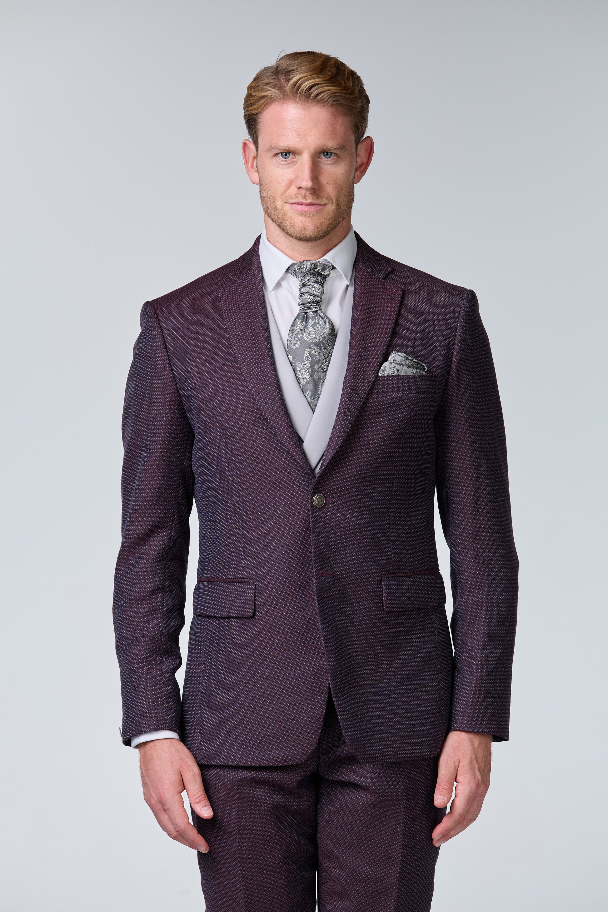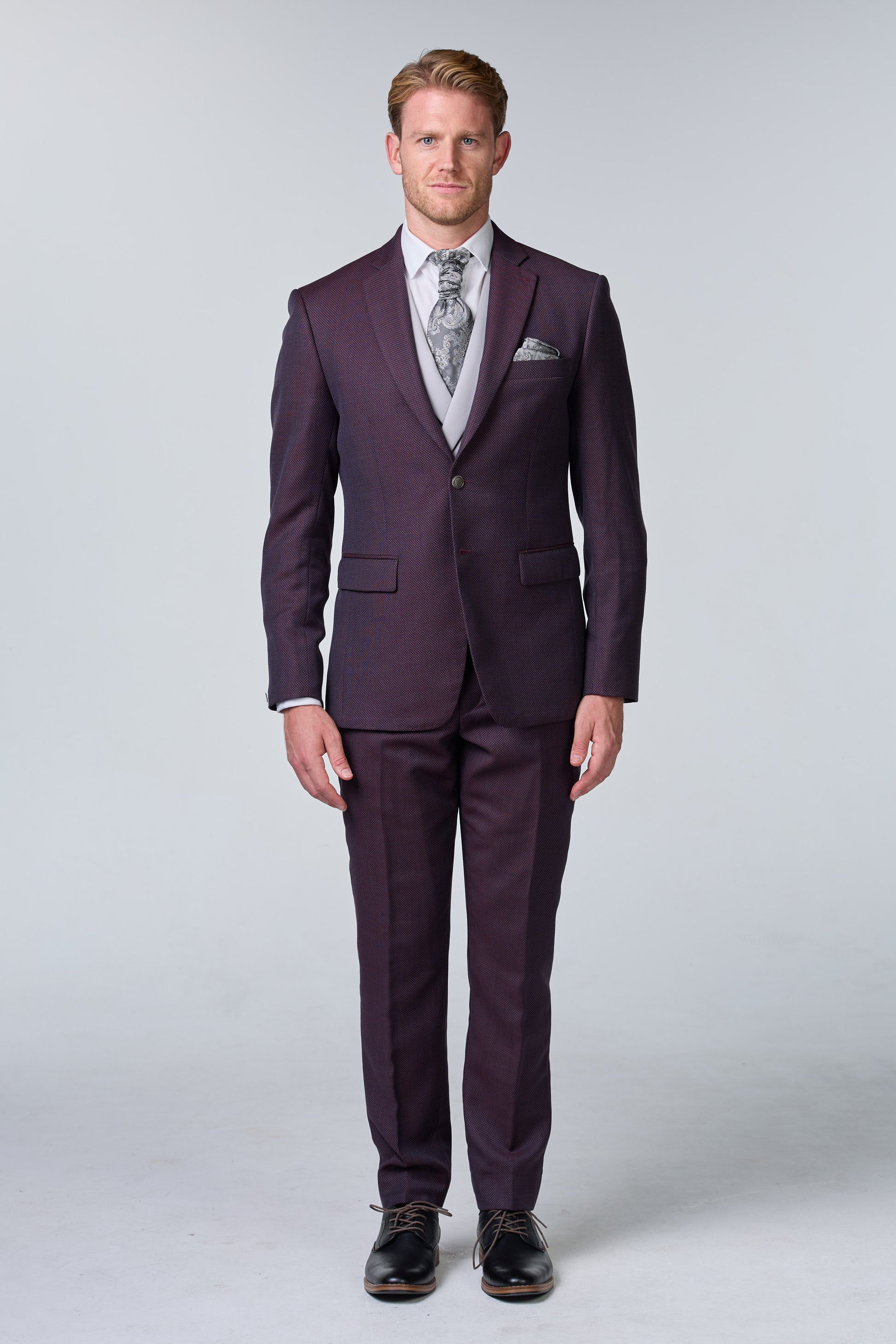 Rot-brauner Hochzeitsanzug mit Punktmuster - premium